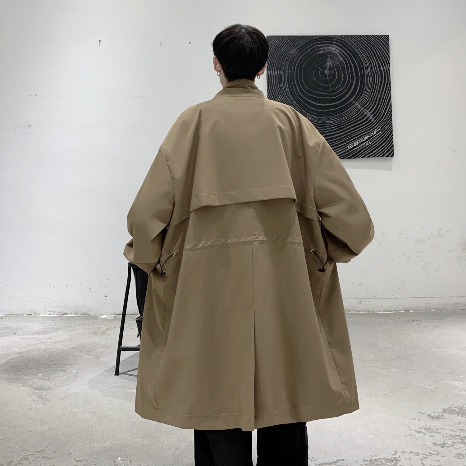 Long windbreaker coat men's spring and autumn tide brand British blouse loose day retro casual cloak coat